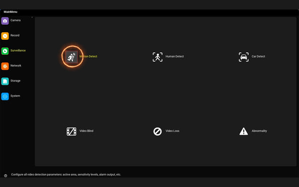 Step 1: Log in to the DVR, navigate to the "System-Surveillance-Motion Detect" page, select all channels, and uncheck "Buzzer."